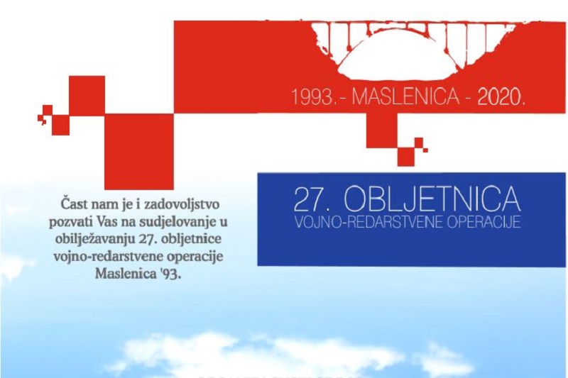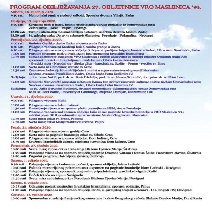 11 sati Polaganje vijenaca kod spomen obilježja križa za sve poginule hrvatske branitelje u VRO Maslenica 93.; zaštitni pojas DC 8 uz odmorište sjeverne strane Masleničkog mosta, Maslenica